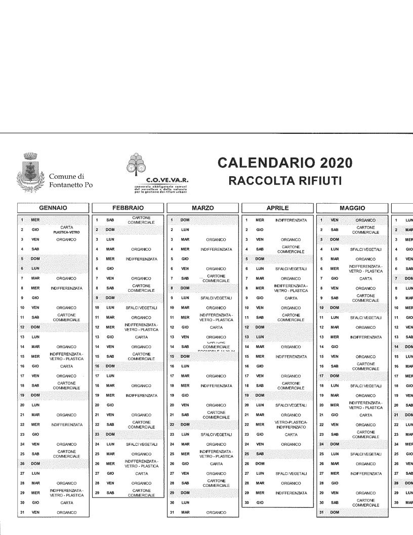 Sono disponili presso gli uffici comunali i calendari per la raccolta differenziata anno 2020 ...